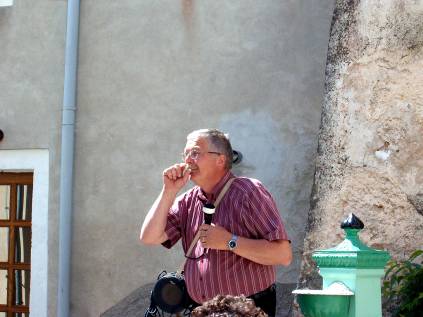 Als nächstes Stand am Nachmittag auf der Ostküste der Insel Krk eine Weinanbaugebiet auf dem Programm der Reise. Auf der Insel Krk ist das grösste Weinanbaugebiet von Kroatien. Grund ist der gute erdhaltige Boden, im Gegensatz zur Dalmatischen Küste und der Kvaerner Bucht mit steinigem Boden. Vor der Stadt Vrbnik sah man die Weinanbaugebiete. In der Stadt Vrbnik angekommen, besuchten wir einen Schauweinproduzent. Auch hier gab es zuerst einen hochprozentigen Snaps zum Aperitif. Ich nahm diesmal keinen. Wir konnten einen Werbefilm über Weinproduktion besichtigen. Später gab es noch eine „Wein-Degustation“ mit drei Sorten Wein (Weisswein, Rotwein, starker Dessertwein). Auch hier sehr Geschäftstüchtige Menschen.