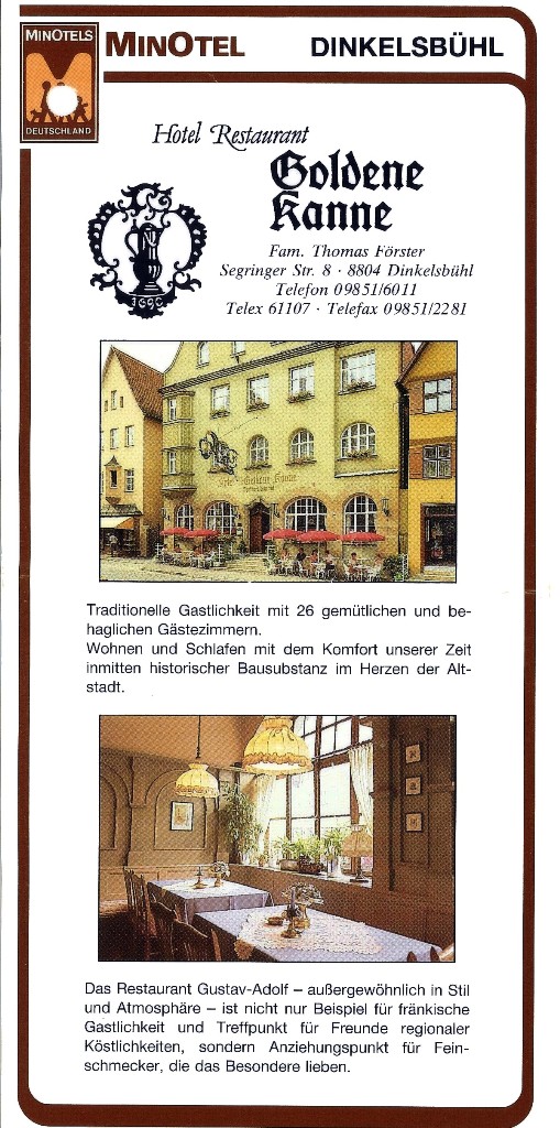 Deutschland | Dinkelsbühl | Hotel Goldene Kanne Veröffentlicht am 26. November 2015 von Daniel Schück Hinterlasse einen Kommentar Vorheriges Zurück zu Deutschland | Dinkelsbühl | Hotel Goldene Kanne ***** [Nachfolgeregelung]